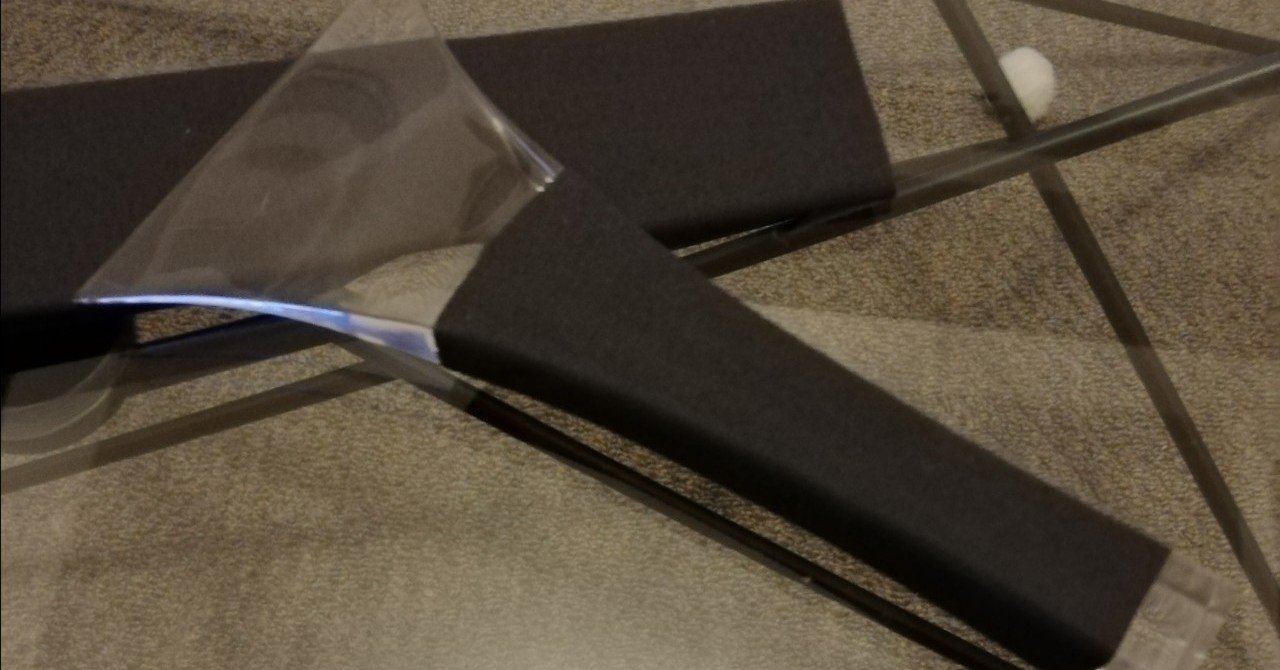 まずは必要なサイズにハサミで切ります。そして、撥のグリップ部分へ